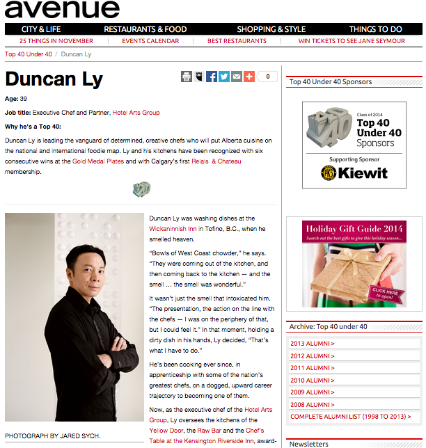 What makes him a Top-40: Leading the vanguard of determined, creative chefs who will put Alberta cuisine on the national and international foodie map, Ly takes risk, with his food, his business, and his overall approach to life, and Calgarians’ taste buds benefit.