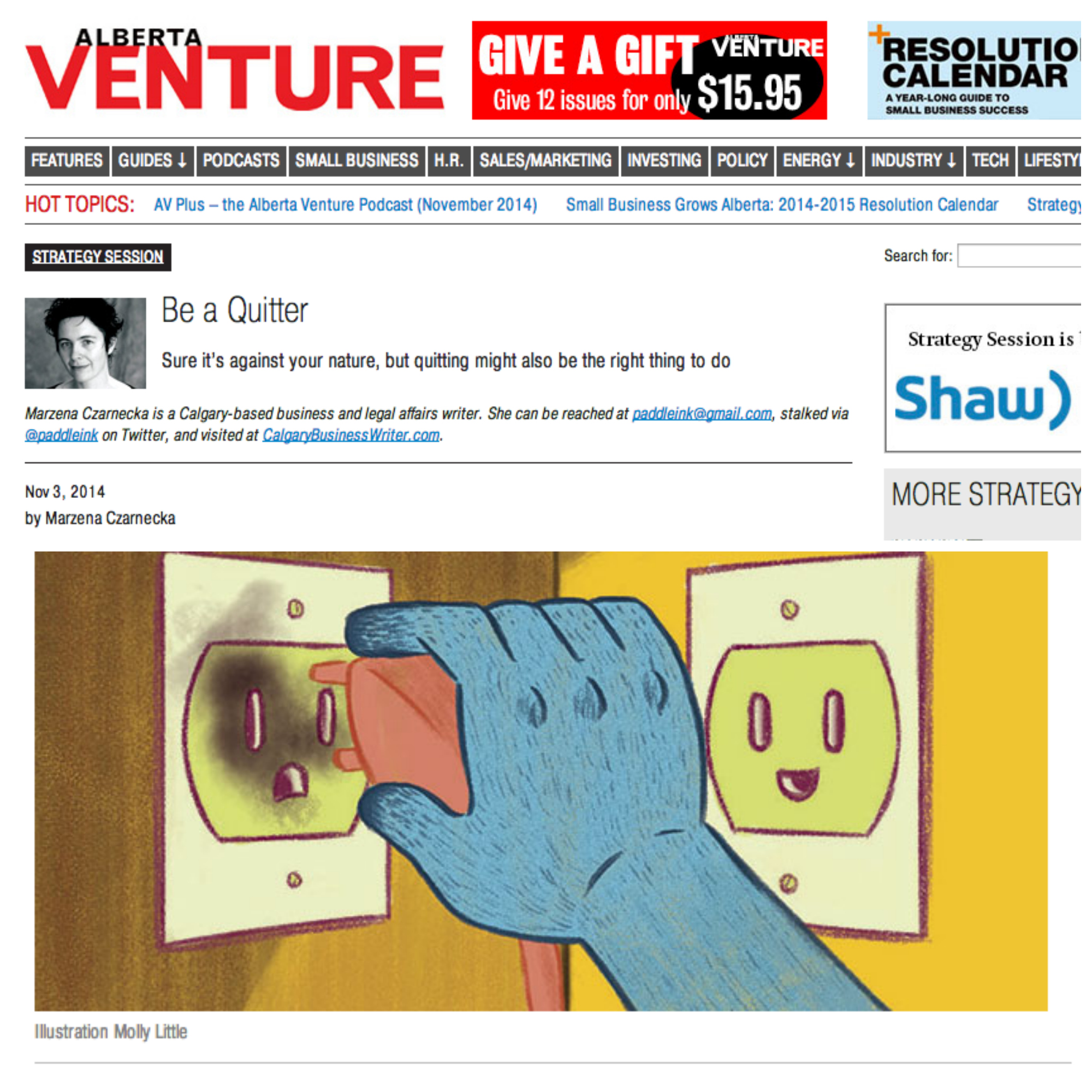 Full text at Alberta Venture: Be A Quitter: Sure it’s against your nature, but quitting might also be the right thing to do